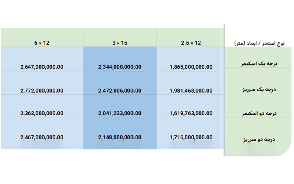 📌 پیشنهاد میشود در جدولها عمق استاندارد مشخص باشد تا قیمتها قابل مقایسه باشند.